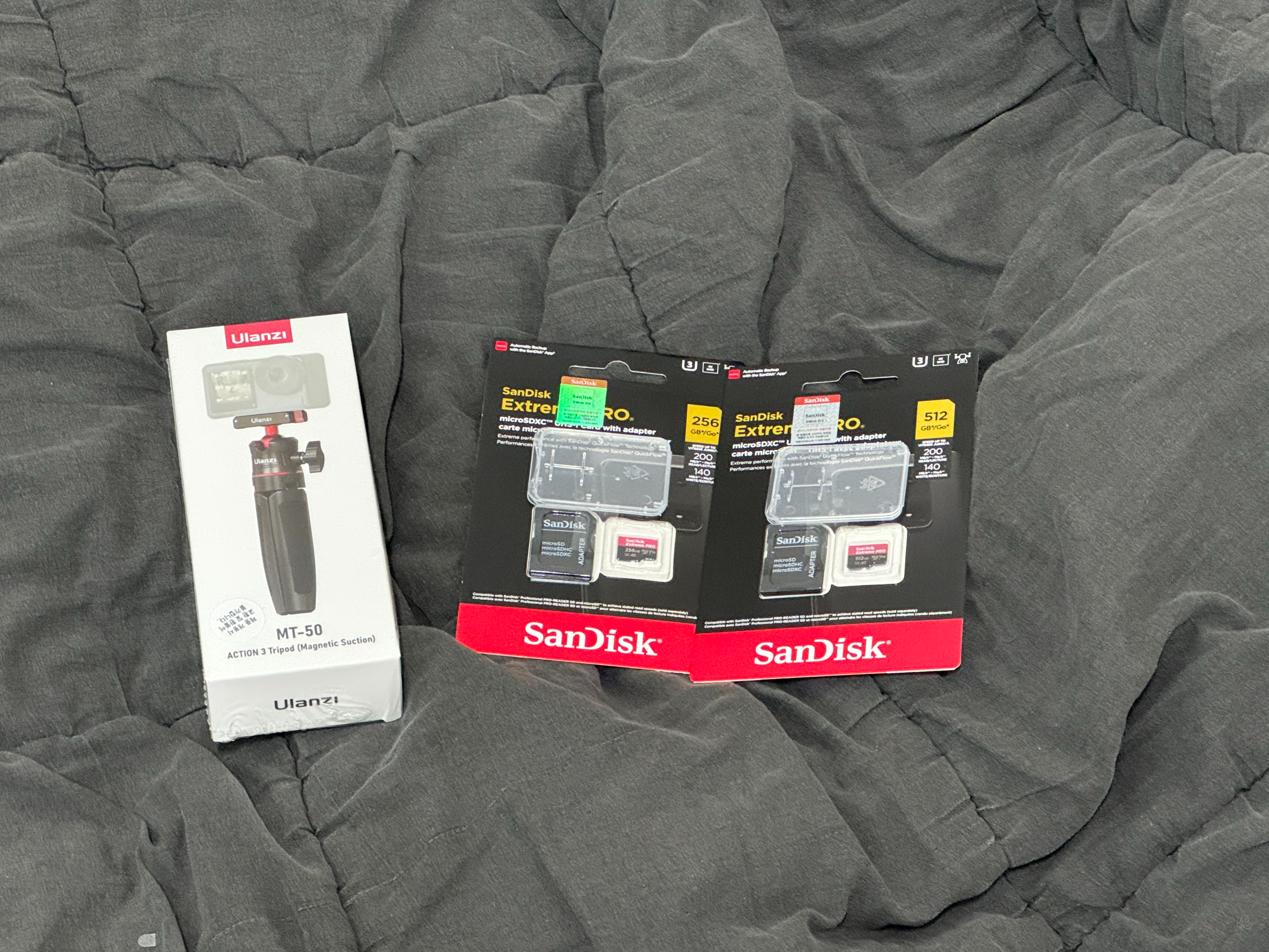 그치만 기기연결을 제외한 나머지(확장 로드 등 조립 및 오즈모 캠 화질 및 디스플레이 조작음 끄기 등 기본 세팅)는 오늘이 되어서야 모두 끝냈다. SD카드와 삼각대 등 추가로 필요한 것도 오늘에서야 구매 완료. 워낙 오랜만에 새로운 유형의 기기를 만지는거라 그런지 좀 헤매긴 했다(...).