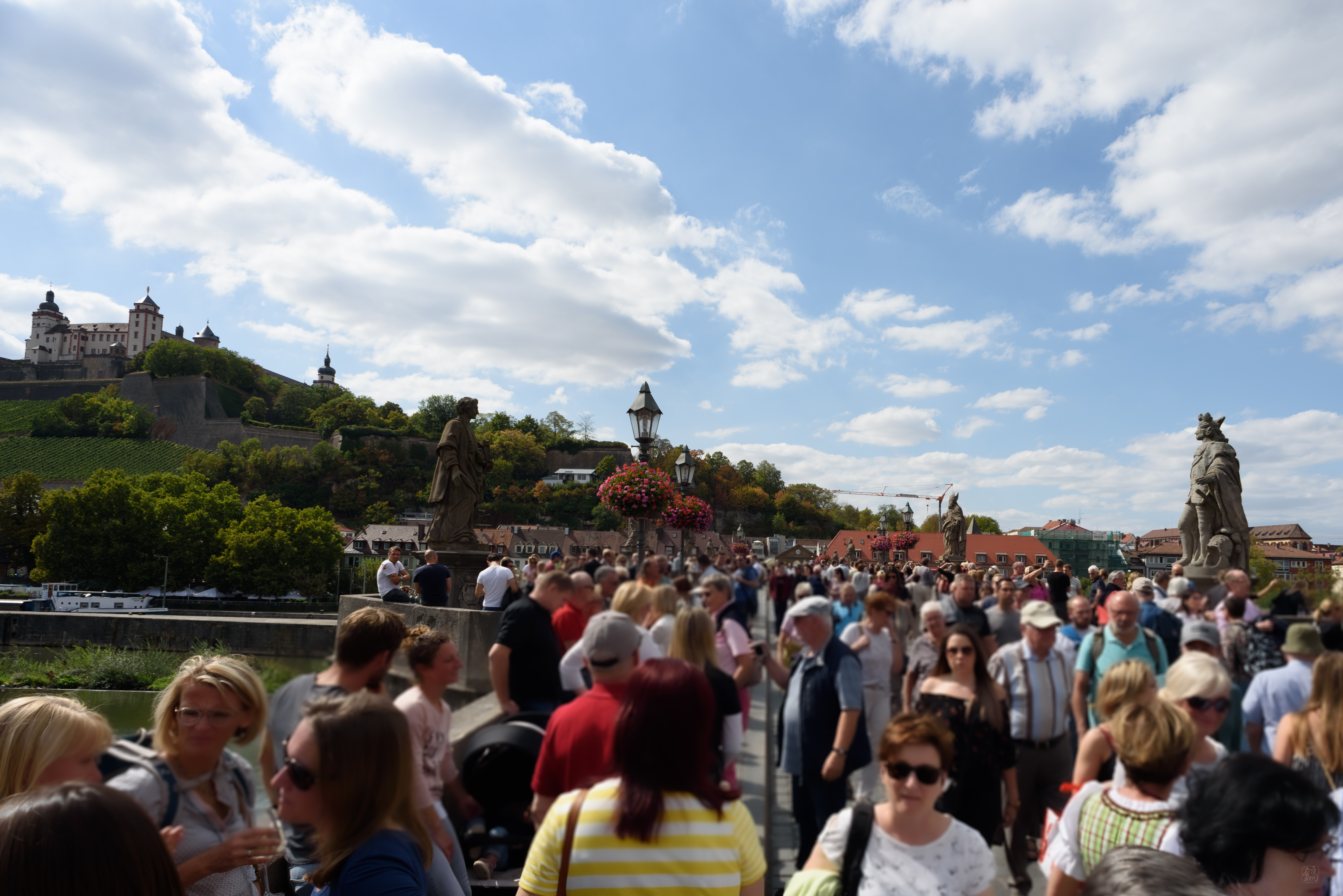 처음에 요새로 가기 위해 다리를 건널 때, "와" 가 절로 나왔다. 마인츠 강의 전경에 감탄해서 "와!!", 요새로 가는 인파들에 놀라 "와..". 사람이 왤케 많아!?!? 여기가 뷔르츠부르크에서 가장 유명한 포인트인 걸 감안해도 사람이 너무 많이 몰린 거 같은데..?