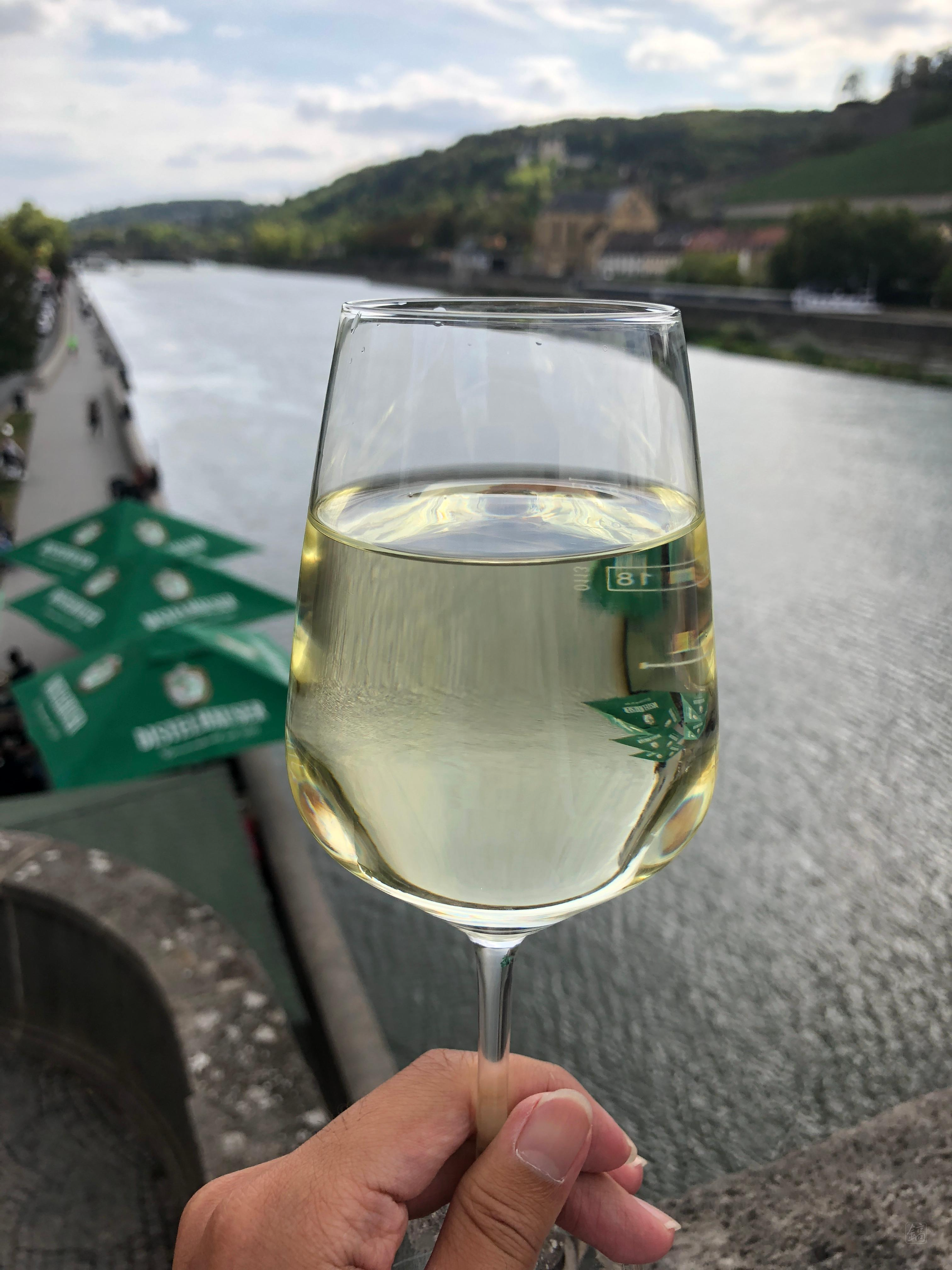 다리 위에서 마인강을 바라보며 한 모금 마시는데, 청량하고 맛있다! 대박이었다. 어제까지 감기때메 고생하던 사람 맞나? 싶을 정도로 잘 넘어가더라. 화이트와인 맛있구나...!? 와인을 맛있게 마신 게 처음이었다.