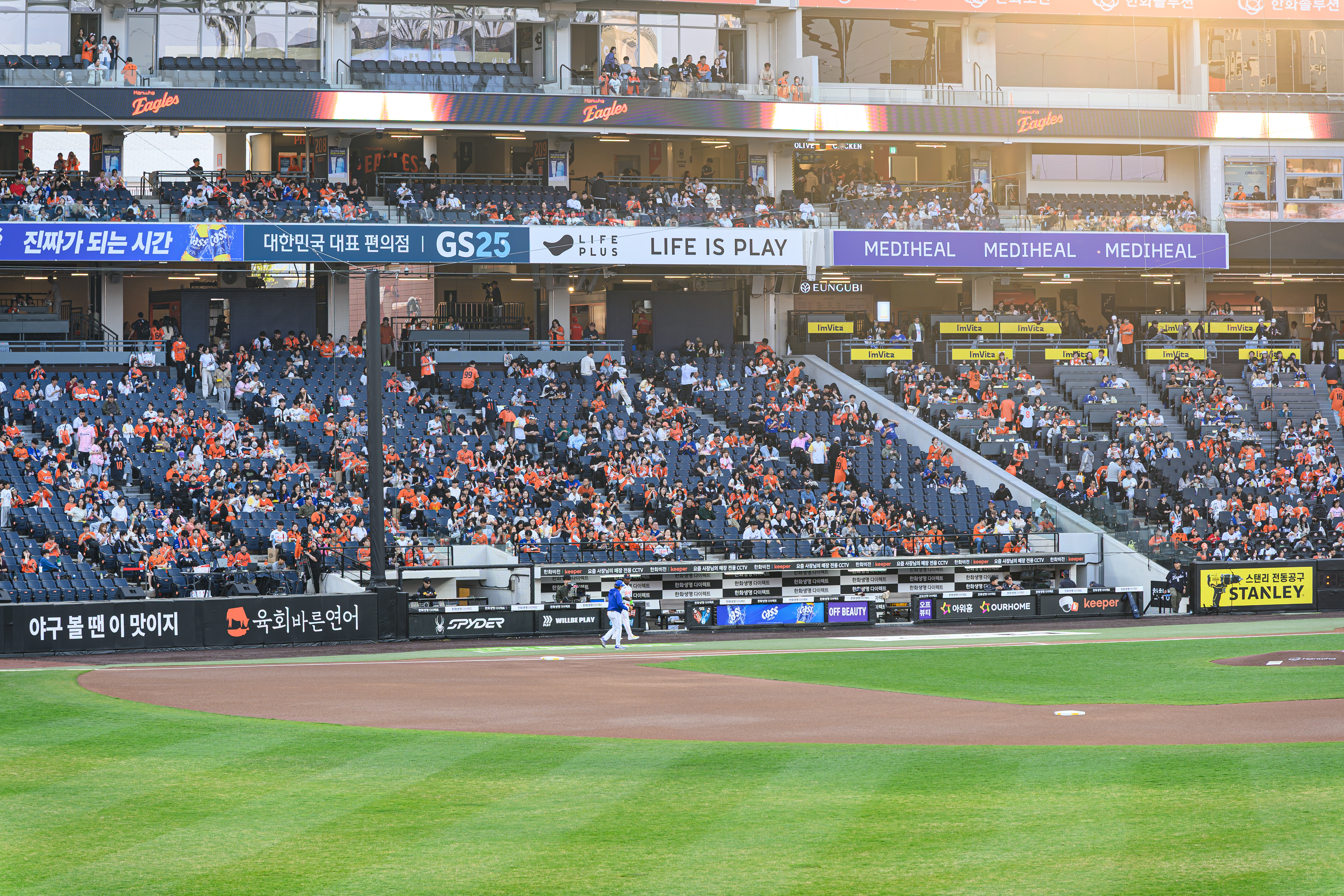 바깥 풍경이 제법 예뻐 한 바퀴 둘러본 후, 구장 내부로 들어갔다. 원래 3루석이었지만, 중간에 외야석에 자리가 하나 생겨서 잽싸게 하나 더 구매했다(직관 덕후지만 응원가 부르는 건 질색이라...). 아직 경기 시작까진 1시간가량의 여유가 있었기에, 구장 전체를 한 바퀴 돌며 천천히 카메라에 담았다.